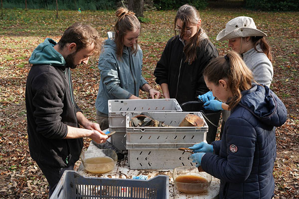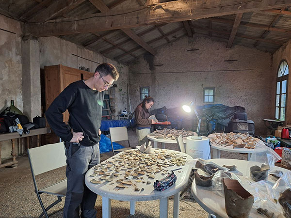 Opération archéologique sur le puits à roue de la Grange des Prés à Pézenas Paragraphe Paragraphe niveau 2 Corps Depuis 2019, les chercheuses Lisa Caliste et Julia Desagher du service Connaissance et Inventaire des Patrimoines de la Région Occitanie mènent une étude sur les puits à roue et à noria des départements de l’Hérault et du Gard. Il s’agit de puits maçonnés associés à des équipements d’élévation de l’eau mis en mouvement par un animal. Présents sur l’ensemble du bassin méditerranéen, ils sont employés en Languedoc et en Roussillon de la fin du Moyen Âge aux années 1930-1950. Ces équipements hydrauliques assuraient l’arrosage des jardins potagers et des cultures et étaient très largement employés dans les jardins d’agrément. Depuis les puits parfois situés sur des tertres, l’eau était conduite jusqu’aux cultures par des réseaux d’irrigation gravitaires. À ce jour, plus de 160 puits à roue et puits à noria ont été recensés sur ces deux départements. Média Image Image Corps Les sources écrites et iconographiques sont relativement rares et éparses sur les puits à roue et à noria, en particulier pour les périodes anciennes. De ce fait, leur datation précise reste souvent difficile. Afin de faire progresser la connaissance des puits à roue et à noria, une opération archéologique a été envisagée sur le puits à roue de la Grange des Prés (Pézenas, Hérault), identifié comme un puits majeur du corpus de l’étude. Mentionné dans un acte notarié de 1643, il pourrait dater de la fin du 16e siècle, au moment des travaux d’aménagement de la résidence et du jardin d’Henri 1er de Montmorency à Pézenas. En complément de l’analyse des sources écrites, l’approche archéologique a été retenue afin de préciser l’époque (ou les époques) de construction de ce puits, à la fois par le mobilier (céramique, bois) et éventuellement par une datation dendrochronologique sur les fondations parfois en bois (par exemple à Saint-Pierre-de-Mézoargues, Bouches-du-Rhône). L’opération avait également pour but d’identifier les différentes phases de construction et les aménagements secondaires du puits à roue. Elle devait aussi servir à mieux comprendre l’alimentation en eau du puits. Média Image Corps Autorisée par le Service régional de l’Archéologie de la DRAC Occitanie, et avec l’accord du propriétaire, la fouille programmée du puits à roue de la Grange des Prés s’est déroulée sur une semaine, du 10 au 14 novembre 2025. Elle a mobilisé une partie du service Connaissance et Inventaire des Patrimoines, en particulier Lisa Caliste, Julia Desagher et David Maugendre, une équipe d’archéologues professionnels constituée autour de l’association « Archéologie des puits » avec Jordan Latournerie, Louise Denis, Louis Lacoste, Vincent Lauras, Tom Mallet, Nastasia Secci, Lucas Martin (INRAP), Céline Gomez et Denis Nepipvoda (Communauté d’agglomération Hérault méditerranée), et plusieurs étudiants en Master archéologie de l’université Paul Valéry de Montpellier : Fanny Beaufreton Germain, Thibault Bertus, Maxime Danière, Tatiana Daubie, Marie Delort, Amandine Lanternier, Ugo Schuller, Alessandra Spinetta, Sarah Tauzia. Média Image Image Corps Le premier jour (lundi), l’équipe a déblayé l’accès, mis en sécurité l’espace souterrain, installé les pompes au fond du puits et mis en place la zone dévolue au traitement des sédiments, au lavage et au tri du mobilier archéologique. Il a fallu une journée et une nuit pour assécher la cuve du puits. Média Image Image Corps Les niveaux archéologiques au fond puits ont été fouillés jusqu’en milieu de journée (mardi). La fouille a concerné la totalité des espaces visibles et accessibles, à l’exception du comblement au centre de la cuve, dans la partie la plus profonde et ennoyée. De nombreux tessons de pots (fond, col, anses, panses) ont été mis au jour, ainsi que des éléments en bois, vraisemblablement des vestiges des mécanismes élévatoires. Média Image Image Corps Au cours du troisième jour (mercredi), plusieurs sondages archéologiques ont débuté en surface, implantés sur la plateforme sommitale, autour de l’orifice du puits (aujourd’hui couvert d’une dalle en béton). Les géomètres de Novatlas ont effectué un relevé 3D des structures intérieures et extérieures. David Maugendre, photographe à l’Inventaire, a réalisé les prises de vue des maçonneries visibles et hors d’eau. Les éléments en bois ont été numérotés, mesurés et photographiés. Le remontage d’une partie des tessons de pots a pu débuter. Samuel Bonnemort et Shaïa Trenson-Merschrod, deux étudiants en cinéma de l’Université Paul Valéry, ont filmé plusieurs scènes pour réaliser une courte vidéo dans le cadre d’un projet universitaire. Média Image Image Corps Le quatrième jour (jeudi), Séverin Pistre, hydrogéologue du laboratoire HydroSciences de l’Université de Montpellier a réalisé des mesures à partir d’échantillons prélevés dans plusieurs points d’eau du domaine de la Grange des Prés. Les fouilles sur la plateforme sommitale se sont poursuivies autour de l’orifice du puits et au départ de la rampe d’accès actuelle. Dernier jour pour les archéologues, ils se sont ensuite chargés du rangement du matériel et du remblaiement d’une partie des sondages. Média Image Image Corps Le cinquième et dernier jour (vendredi), le mobilier archéologique a été classé et conditionné pour être inventorié et analysé par des spécialistes. La céramique sera notamment prise en charge par Ugo Schuller, étudiant de l’Université Paul Valéry de Montpellier, sous la direction d’Isabelle Commandré. Média Image Image Corps Les données archéologiques mises au jour sont désormais stabilisées et ouvrent la voie à une phase d’étude scientifique approfondie