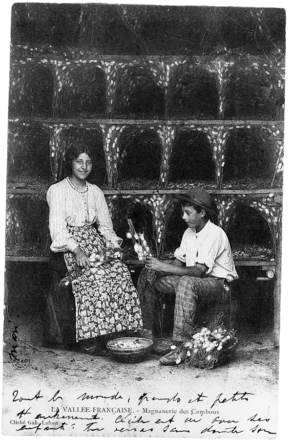 Image Voyage d'un bas de soie Partager cet article : Ses doigts glissent sur le bas présenté sur l’étal. Quelle douceur, quelle merveille que la finesse de cette soie… Dans le brouhaha de la foire de Beaucaire, au milieu des âpres marchandages et des hennissements de chevaux lointains, elle est à des lieues d’ici, transportée par la beauté de l’ouvrage, par ce bas de soie qui dit tant à celles qui manient l’aiguille, à celles qui ne connaissent sur leurs jambes que le coton ou la laine… Image Assise près de la fenêtre pour profiter au maximum de la lumière du jour en ce début de printemps, elle s’active de ses doigts encore agiles et pique avec précision la douce étoffe renforcée de tulle. Une nouvelle série de bas de soie, produite par l’usine de bonneterie Louis Brun, est arrivée hier, tout droit d’Arre, aux confins du Gard. Là où les filatures poussent comme des champignons, paraît-il. La production de fil de soie est désormais concentrée dans les Cévennes. La filature Ricard au Vigan, Molines à Saint-Jean-du-Gard, la filature du Mazel à Notre-Dame-de-la-Rouvière qui vient de tripler sa capacité de production avec ses nouvelles chaudières et ses 70 bassines, Pelon à Aulas qui l’a un temps employée... Tous ces ateliers se mécanisent peu à peu, donnant encore plus d’ouvrage aux brodeuses. Les faiseurs de bas, qui tenaient leurs propres petits ateliers familiaux, ont rejoint ces usines, tandis que les brodeuses les plus habiles poursuivent à domicile. Elle, ce qu’elle aime, ce sont les motifs complexes, les broderies riches en couleurs, les dessins nouveaux et du meilleur goût, les ajouts de perles, les broderies pleines d’arabesques, les fleurs parfois inspirées de l’Orient… Un penchant qui lui vient sans doute de ses aïlleules, qui lui ont transmis leurs techniques : son arrière-grand-mère déjà était brodeuse, spécialisée dans les bas à la péruvienne qui firent la réputation et la richesse de Nîmes, tant ces bas légers et colorés étaient recherchés par les riches aristocrates de Lima. C’est dire combien la réputation des bas de soie des Cévennes perdure depuis des générations…Pour elle, le bas de filoselle suffit, cette fibre issue des cocons de soie de moindre qualité, dont le fil moins régulier et moins brillant reste accessible : quatre fois moins cher. Rehaussés de quelques petits points élégants de sa confection, ses bas forgent tout de même l’admiration. Mais à regarder ces innovations qui l’une après l’autre changent les métiers, chaudières à vapeur, machines à dévider et torsader le fil de soie, métiers mécaniques, qui sait combien de temps on brodera encore à la main ? Image Image Bas de soie brodés, collection municipale de Ganges. Périn Jean-Michel (c) Inventaire général Région Occitanie Image Filature de soie de Maison Rouge, Saint-Jean-du-Gard. Descossy Michel (c) Inventaire général Région Occitanie Image Elle étala sa récolte de feuilles et retourna voir encore une fois ce qu’il en était des cocons accrochés à leurs balais de bruyère. Ces bouquets suspendus ornés de parfaites petites pelotes ovales et blanches, fibreuses à souhait, avaient quelque chose de fascinant. Pourtant, dès demain, démarrerait la descoconada… Demain, elle allait décoconner, intervenir avant que la chrysalide ne cherche à sortir, avant qu’elle ne brise le précieux fil. Image Désormais les « graines » arrivaient dans de jolies boîtes. On avait trouvé ce moyen, aidé par Pasteur, pour élever des œufs de vers à soie sains, non porteurs de cette terrible maladie qui en avait décimés tant. Les temps avaient changé, fini la couvaison dans le corsage, bien à l’abri sur la poitrine, fini les graines placées au chaud sous l’édredon. La magnanerie était aménagée de claies où les vers à soie allaient grandir, chauffée pour maintenir une température favorable à leur éducation. Pourquoi parler d’éducation et non d’élevage, alors qu’on ne leur enseignait rien à ces chenilles… cela l’avait toujours interrogée ! Toutes ces entreprises, ces milliers de gens qui dépendaient de ces vers, de leur extraordinaire capacité à produire un fil d’un seul tenant, 700 mètres de long, souvent plus d’un kilomètre ! Comment un si petit insecte pouvait-il produire autant et détenir ainsi, par la spécialisation de ses glandes salivaires, le sort des vallées cévenoles ? Ce savoir-faire là n’était pourtant aucunement récompensé... Au printemps donc, les œufs étaient placés en couveuse. On y guettait l’éclosion, ce moment où sortiraient des dizaines de milliers de petits vers à soie. Quatre mues allaient suivre, cinq semaines de nourrissage intensif, à la cadence des mandibules de ces chenilles voraces. Face aux tapis de feuilles de mûriers, sans cesse regarnis, elle les observait souvent, ces chenilles dévoreuses pour qui on avait planté des mûriers à perte de vue, sur la moindre colline, alignés en terrasses. L’heure venue, les vers à soie grimpaient dans les branches de bruyère pour y tisser leur cocon, pensant opérer bien vite leur métamorphose en papillon. Mais c’était sans compter le temps de la descoconada… Synonyme de fête pour les familles réunies autour des brandons, où l’on brûlait la bruyère dégarnie de ses cocons à la Saint-Jean, le décoconage signait la mort de millions de Bombyx mori.Elle aimait se saisir des cocons, les décrocher de leurs branches. Elle était fière quand elle avait là une belle chambrée : quand le ver était sain, le cocon beau, tissé serré, blanc ou crème. Tandis qu’on tuait la chrysalide à l'air chaud dans les étouffoirs, pour stocker la plupart des cocons, elle préparait sa banque, remplissait sa bassine. Le plus dur restait à faire, dans la moiteur de l’atelier : plonger les cocons précieux dans l’eau brûlante, pour ramollir la séricine, une substa
